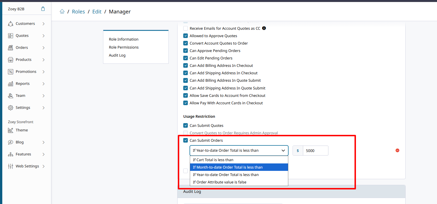 Limit the Order Amount a Buyer can submit by Cart Total, Month-to-date or Year-to date Order Totals.